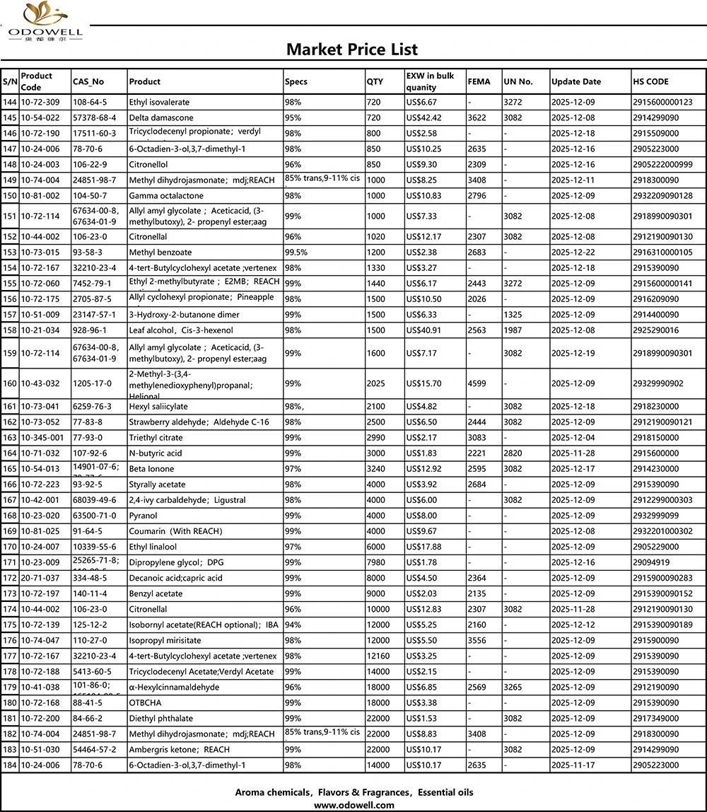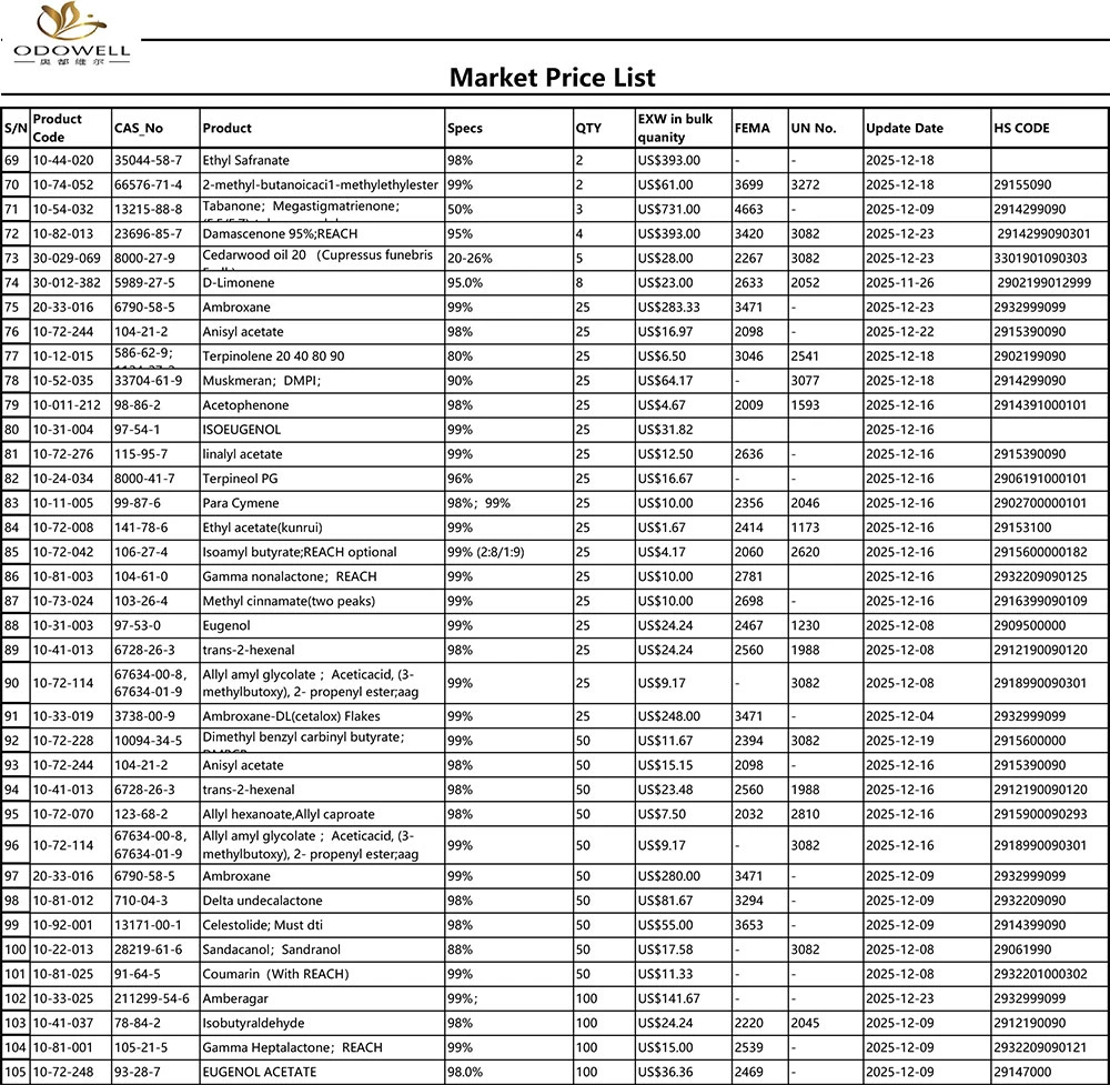 Allyl Cyclohexyl Propionate – Εστέρας Ανανά της ODOWELL για φωτεινά, μακράς διάρκειας φρουτώδη αρώματα